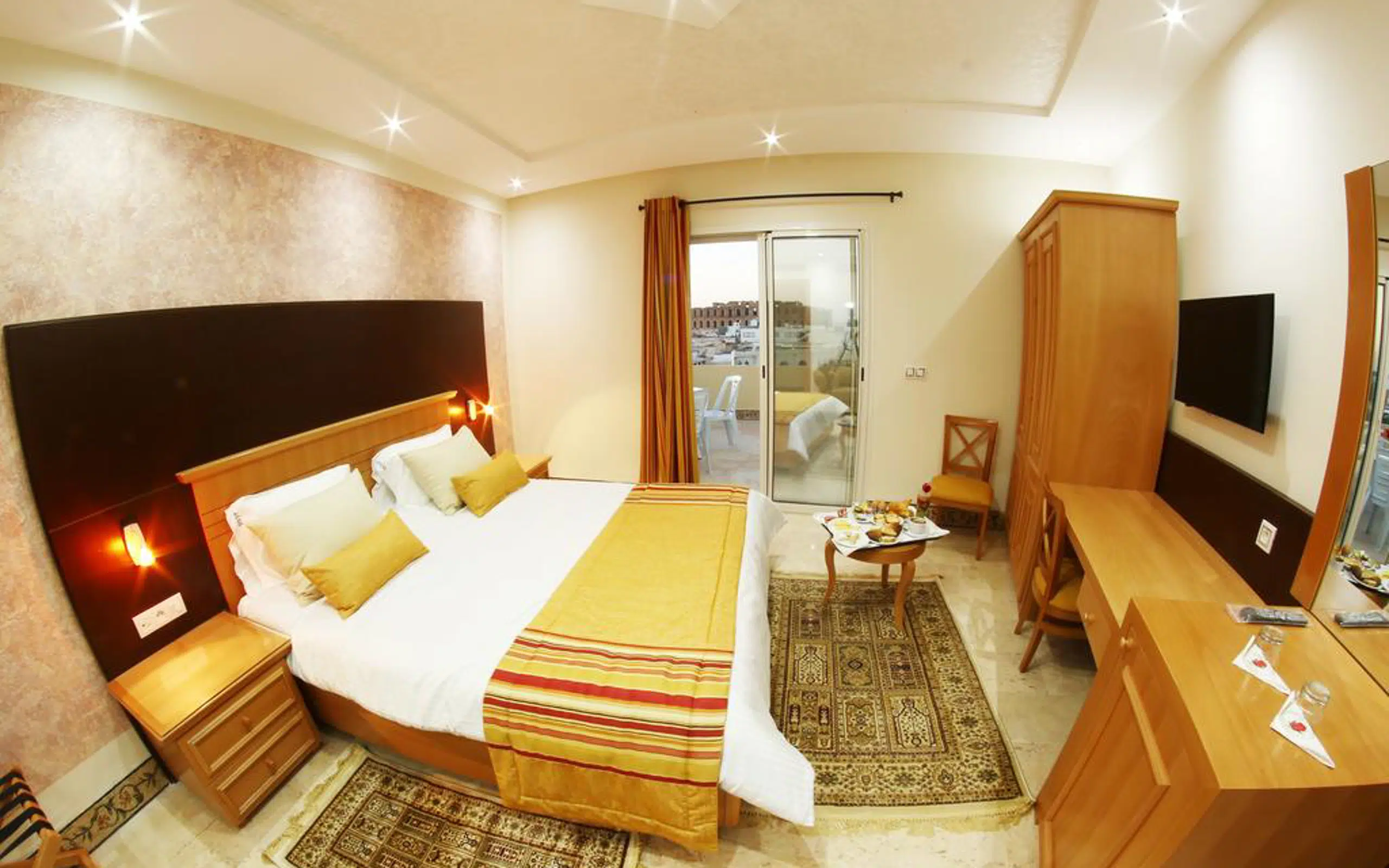 Implanté au cœur de l’histoire romaine, l’hôtel JULIUS EL JEM entièrement rénové, se situe au centre ville en face de l’amphithéâtre romain et à 44 km de la ville de Mahdia et à 70 km de l’aéroport de Monastir. l'Hotel Julius dispose d'un jardin, d'un salon commun et d'une terrasse bien exposée avec piscine.